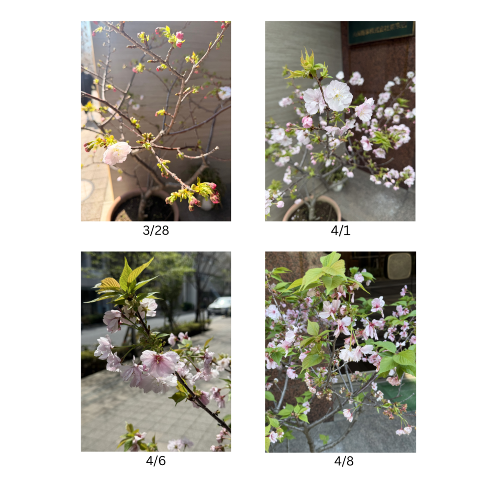 私は週に2回出社するのですが、訪れるたびに少しずつ姿を変えていく桜を見るのがとても楽しいです。